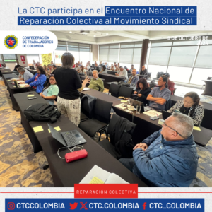 Publicado por: ComunicacionesCTC 10 Oct La CTC participa en el encuentro nacional y regional del Comité de Impulso para la Reparación Colectiva al Movimiento Sindical – CONARE