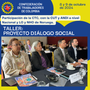 Publicado por: ComunicacionesCTC 8 Oct Participación de la CTC, con la CUT y ANDI a nivel Nacional y LO y NHO de Noruega en el taller «Proyecto Diálogo Social»